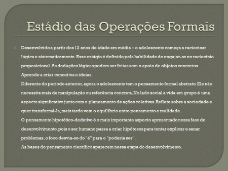 Trabalho sobre os estádios do desenvolvimento cognitivo