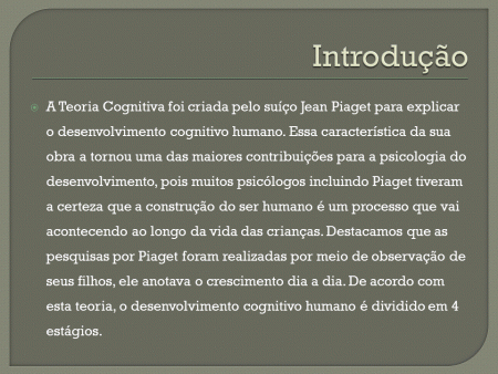 Trabalho sobre os estádios do desenvolvimento cognitivo